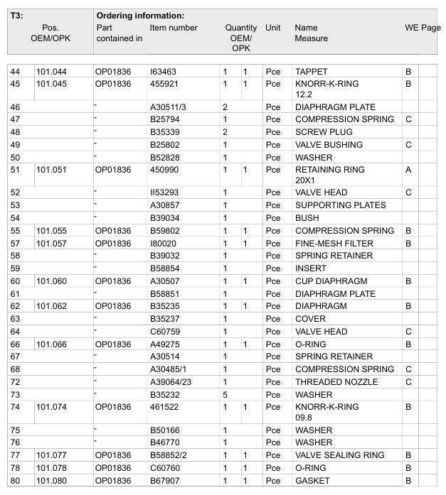 Order of spare parts for DISTR. VALVE UNIT KESDV4/1,27-EPZ